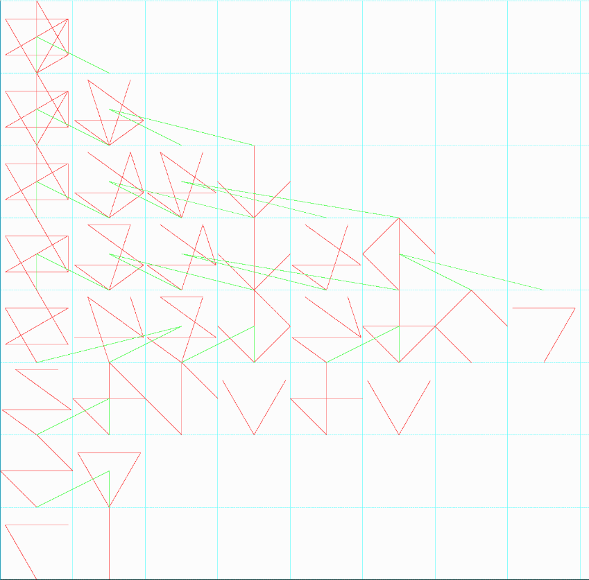 Die Anzahl der tryNext - Aufrufe ist stark nach oben gegangen (im gleichen Verhältnis die Heap-Auslastung). Noch etwas geringer ist die Anzahl der Trys, wenn man an einmal waagrecht und dann senkrecht spiegelt: